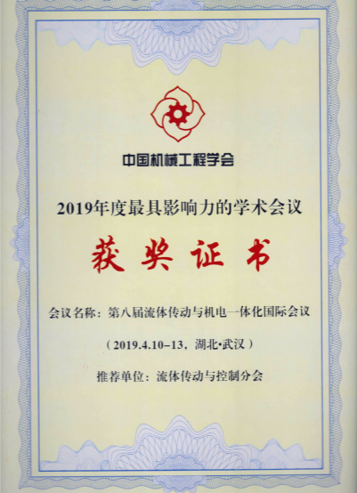 依托在北京機械工業自動化研究所有限公司的中國機械工程學會流體傳動與控制分會被中國機械工程學會授予“2019年度優秀專業分會”稱號;由流體傳動與控制分會主辦的“第八屆流體傳動與機電一體化國際會議”被中國機械工程學會授予“2019年度最具影響力的學術活動”稱號。