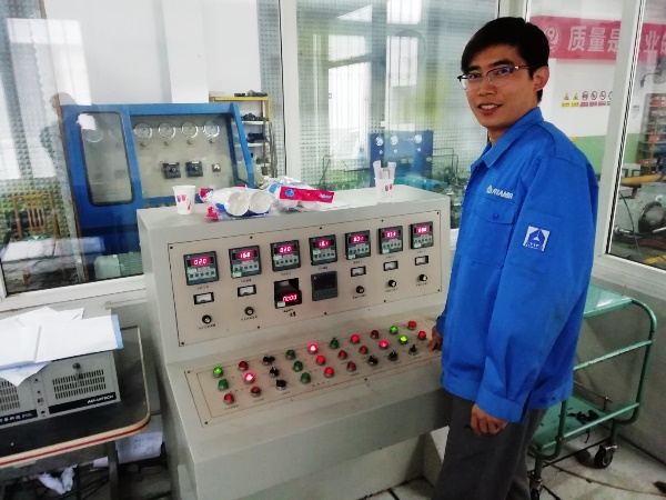 馮俊學同志在“多功能高精度線性摩擦焊試驗設備液壓系統”項目中擔任主要人員。在項目現場調試驗收的關鍵階段,甲方驗收部門發現問題,要求立即停止調試驗收。馮俊學立即現場分析情況、排查原因,很快發現了問題所在。他緊急聯系元件廠家,但得到反饋是調整最快也需要一周時間。在關鍵時刻,馮俊學認為必須盡快在現場解決問題,保證驗收進度。沒有工人師傅在場,他親自動手對減壓閥進行“解剖”治療;沒有專用的拆卸工具,就找來兩個活動扳手代替;沒有減壓閥專用的墊片,就在現場找到幾個強度相近、尺寸相符的的墊片。準備完畢,馮俊學脫去外套、擼起袖子,用不趁手的工具對減壓閥做起了手術,一個半小時的努力,馮俊學身上濺滿了油液。最后,四個減壓閥均治療完畢,重新上崗,甲方驗收人員豎起了大拇指。